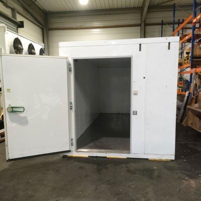 Cette chambre froide négative d’occasion pour la congélation a un volume important de stockage de 27 m3. Nous l’avons équipée d’un groupe froid négatif neuf, raccordement à distance, alimentation en triphasé 380V. L’évaporateur cubique est d’occasion.