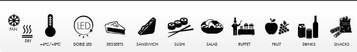 DOUBLE LED A CHAQUE ÉTAGE : Les produits sont éclairés par deux lignes de lumière, afin d’avoir une illumination des produits sans ombre indésirable.